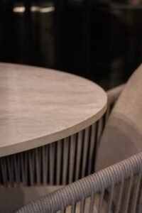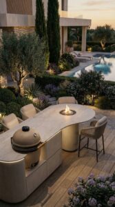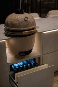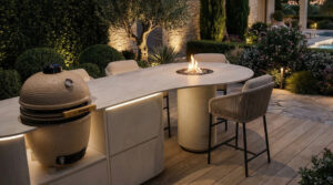 A Fiddr made for shared moments. With soft rounded lines, a light palette, a wine cooler, integrated lighting, a built in sound system and a fireplace at its heart, it is the perfect setting for drinks, bites and long evenings outdoors.