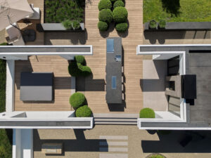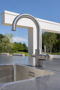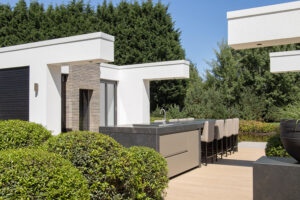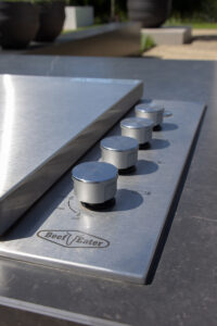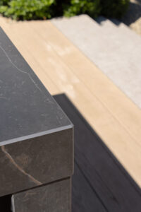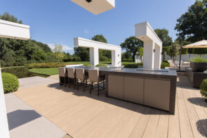 Living outside the way you love to live inside. The generous high dining bar stretches along the kitchen like an indoor table that has simply moved outside, with a lounge area flowing around it
